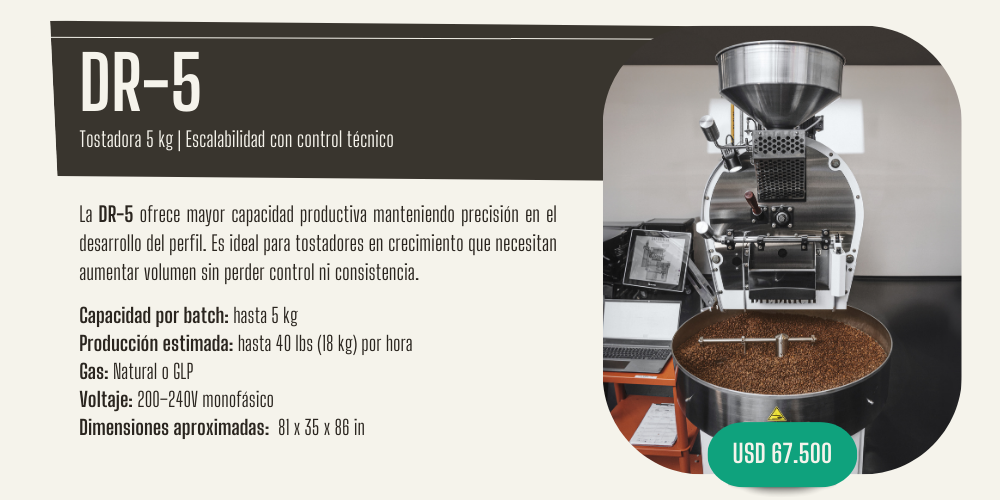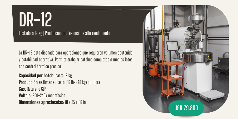 La serie DR se distingue por su equilibrio entre control manual, capacidad productiva y soporte técnico especializado, convirtiéndose en una plataforma sólida para quienes buscan profesionalizar su proceso de tueste y escalar con criterio técnico.